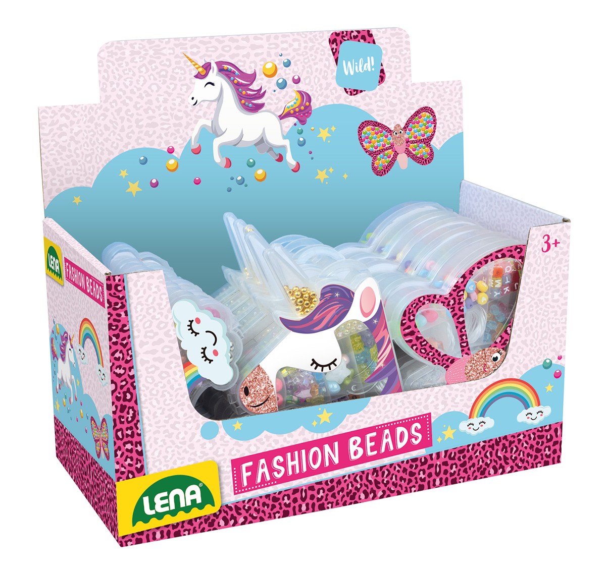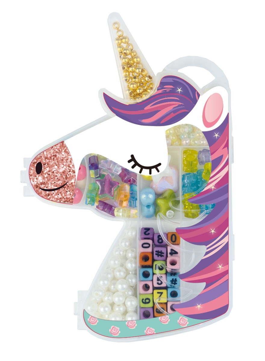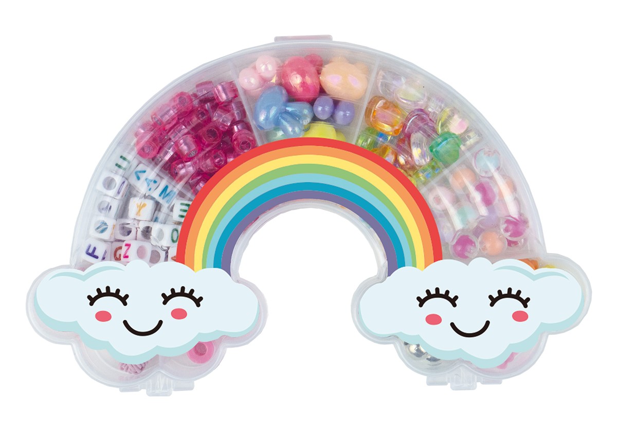 Barevné plastové korálky se šňůrkami v plastovém boxu. 3 druhy